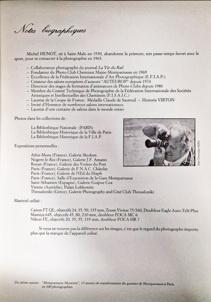 Michel HUNOT, né à Saint-Malo en 1930, abandonne la peinture, son passe-temps favori avec le sport pour se consacrer à la photographie en 1963.